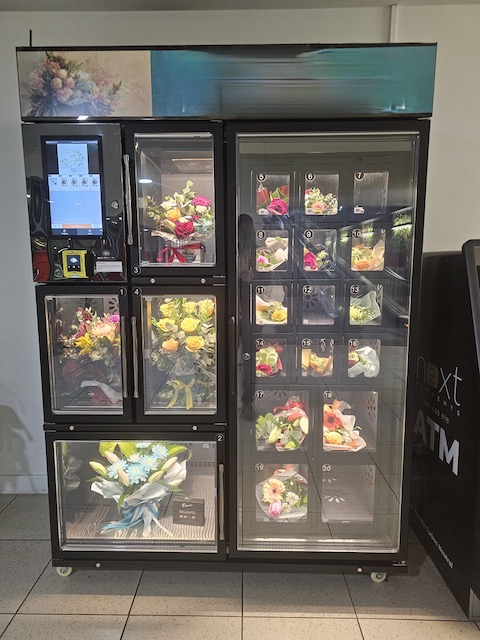 Optional to the sale is a unique vending machine, strategically placed at the entrance of the shopping center, not far from the flower shop.